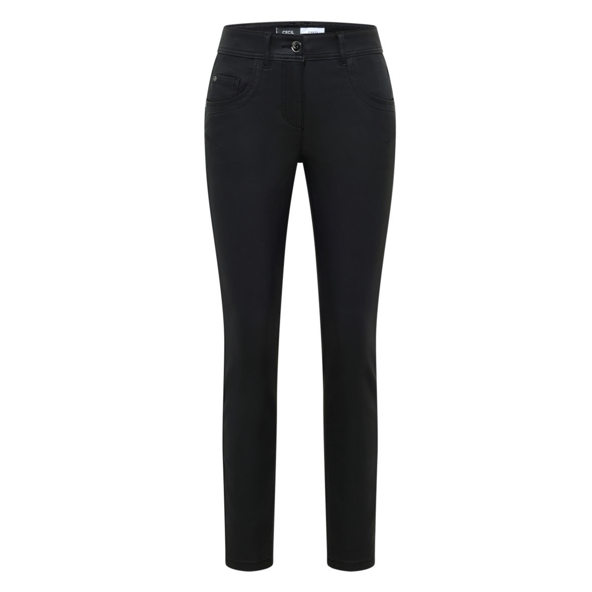 Die beschichtete Hose von CECIL für Damen begeistert im angesagten Leder-Look mit leichtem Glanz. Slim Fit, Mid Waist und Slim Legs sorgen für eine figurbetonte Passform, während der Viskosemix mit Stretchanteil angenehmen Tragekomfort bietet. Der 5-Pocket-Style rundet den rockig-edlen Look stilvoll ab.