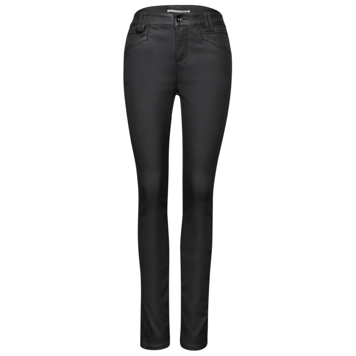 Die beschichtete Hose im Style York von Street One für Damen punktet mit einer schlanken Passform. Mid Waist und Slim Legs sorgen für eine figurbetonte Silhouette, während der Materialmix mit Stretchanteil hohen Tragekomfort garantiert.