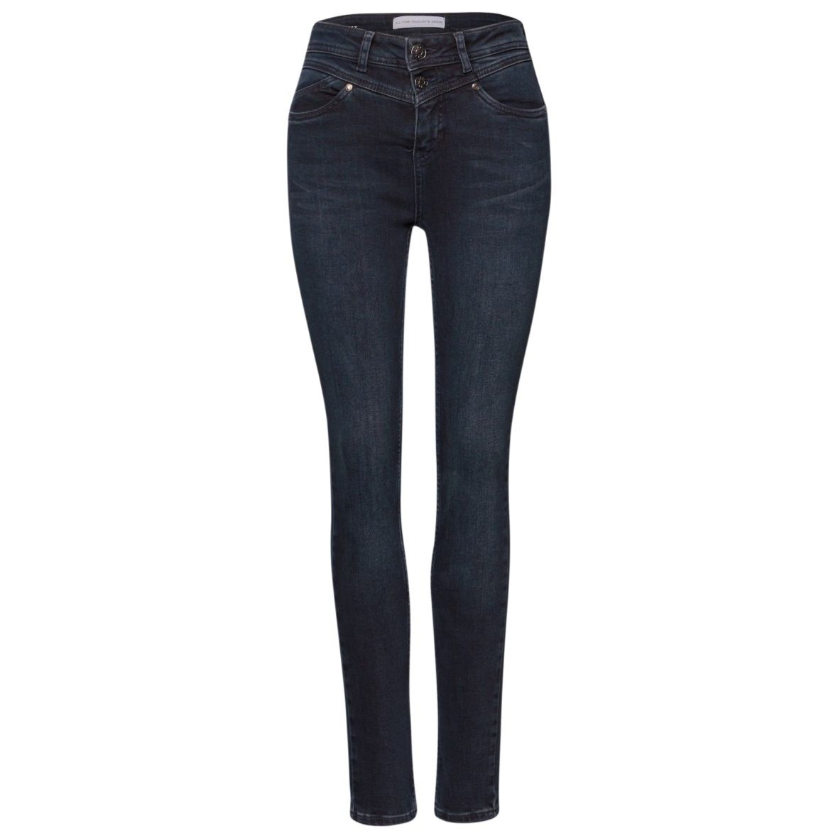 Die Jeans im Style York von Street One für Damen begeistert mit Slim Fit, High Waist und einer edlen schwarzblauen Waschung. Der softe Baumwollmix mit Stretchanteil sorgt für ein angenehmes Tragegefühl. Trage die Jeans figurbetont oder wähle eine Nummer größer für einen entspannteren Look.