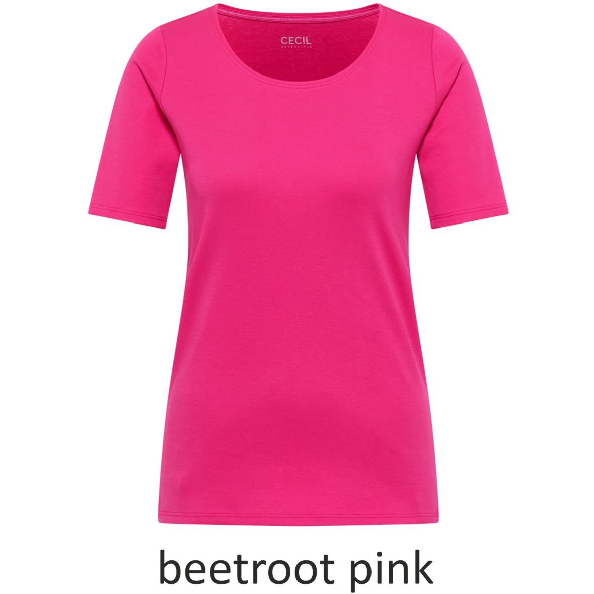 Cecil Damen T-Shirt Basic Unifarbe Basic Power! Feminines Damen T-Shirt im Style Lena von CECIL. Es zeigt sich mit Rundhalsausschnitt und in frischer Unifarbe. Ein neues Basic-Oberteil, das sich toll zum Kombinieren eignet.