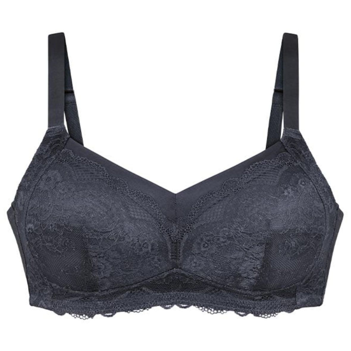 - gefütterte dreigeteilte Cups ohne Bügel optimieren die Passform