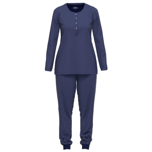 Götzburg Damen langer Schlafanzug Dots Pyjama mit Bündchen