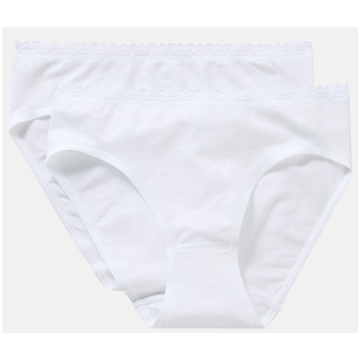 Klassischer Bikinislip im praktischen 2er-Pack – feminin und super bequem. Die zarte Spitze am Bund bringt ein kleines bisschen Romantik in deinen Alltag. Die Qualität aus 95% Baumwolle und 5% Elasthan LYCRA sorgt für ganz viel Natürlichkeit auf der Haut. Für ein gutes Gefühl - jeden Tag.