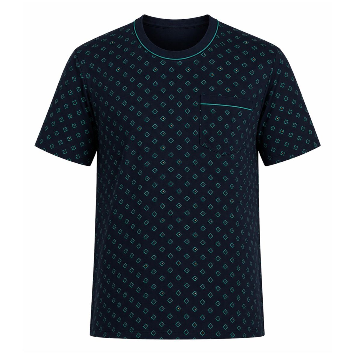 Genieße erholsame Nächte in stilvoller und komfortabler Nachtwäsche: Dieser kurze Schlafanzug überzeugt durch sein zeitloses Design und ein besonders angenehmes Tragegefühl. Das Oberteil ist mit einem klassischen Rundhals-Ausschnitt ausgestattet und verfügt über eine praktische Brusttasche, die dem Look eine dezente, moderne Note verleiht. Die kurze Hose sorgt für optimale Bewegungsfreiheit und macht den Schlafanzug zur idealen Wahl für warme Nächte.