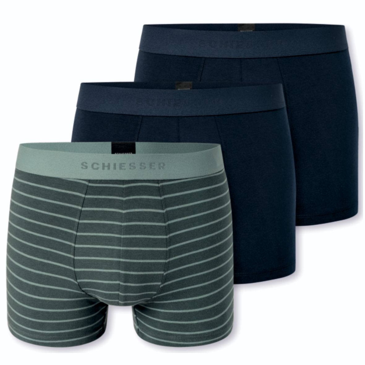 - Herren-Shorts im 3er-Pack (2x dunkelblau, 1x mineral gestreift)