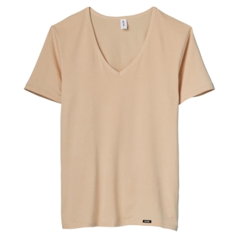 Mit unserem neuen Business-Halbarm-shirt in Hautfarbe und tiefem V-Ausschnitt sind Sie jederzeit unsichtbar gut angezogen.